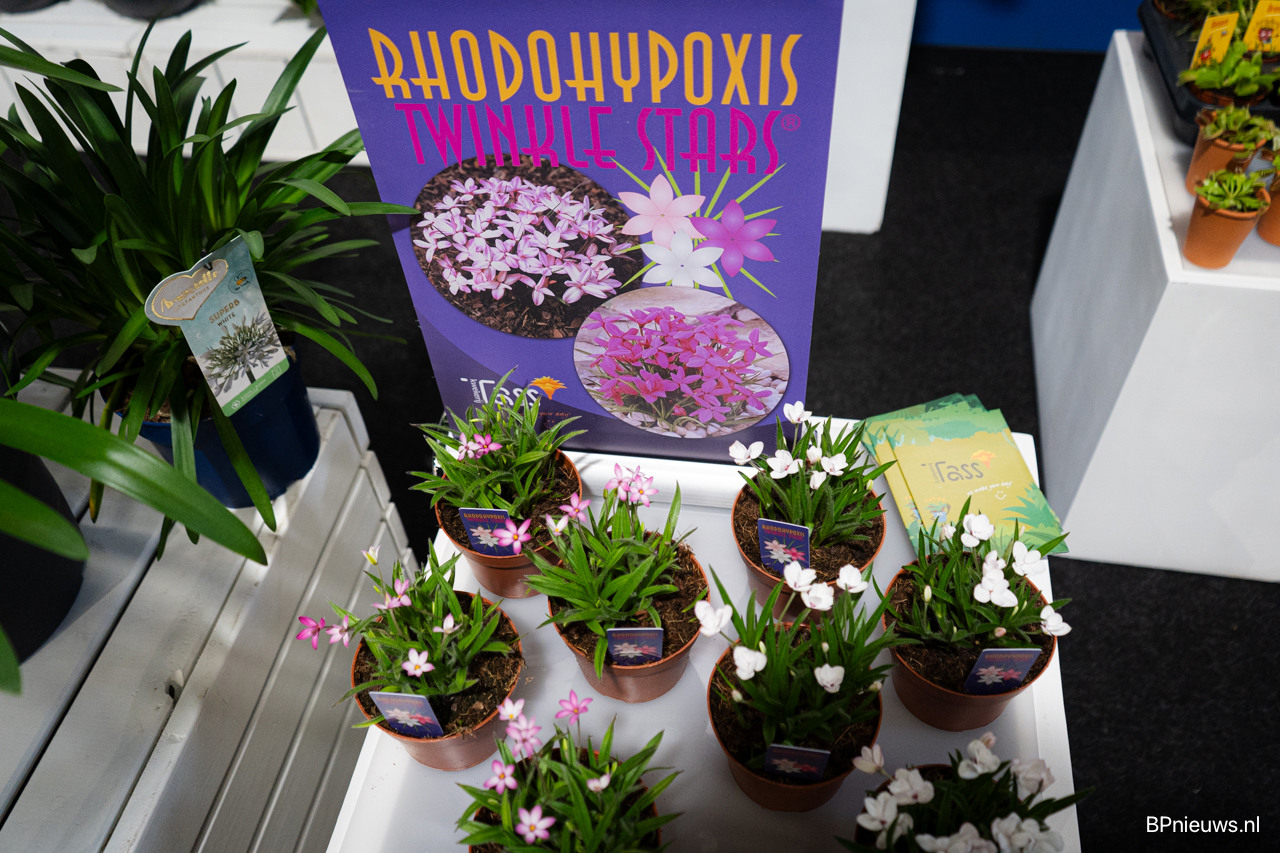 Ronald van de Knaap van Kwekerij Tass laat de nieuwe Rhodohypoxis zien