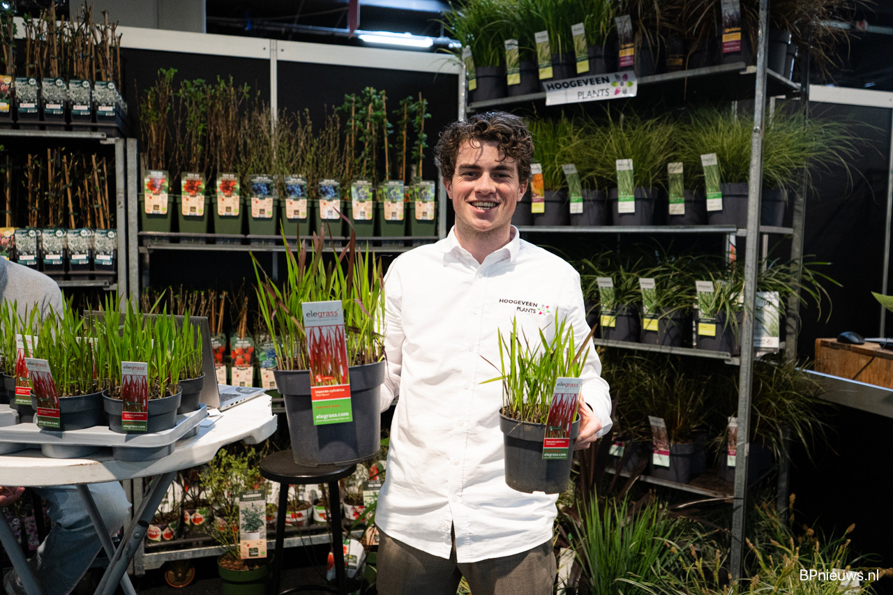 Tim Sonneveld van Hoogeveen Plants laat de Imperata Red Baron zien, gekweekt in Portugal en vanaf nu beschikbaar, zo wordt assortiment uitgebreid met Miscanthus, Calamgrostis, cortaderia, pennisetum, panicums en agapanthussen