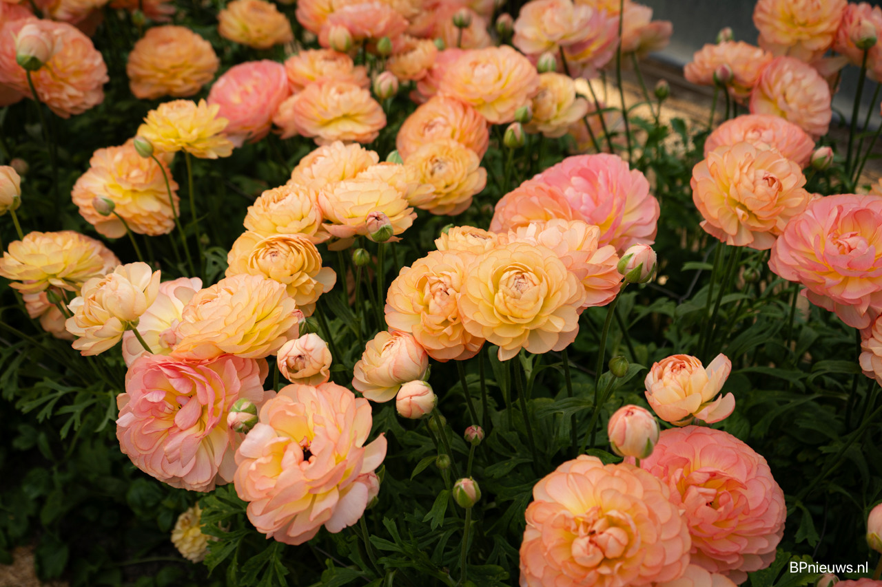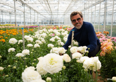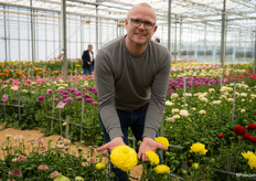 Jelle van der Werken van Coloriginz laat de Ranunculus Romance Supreme Yellow zien