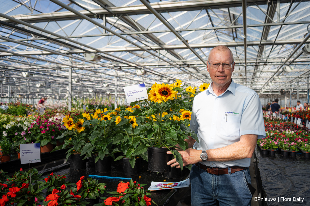Gerard Werink van Syngenta met de Sunfinity Yellow/Red Bicolor