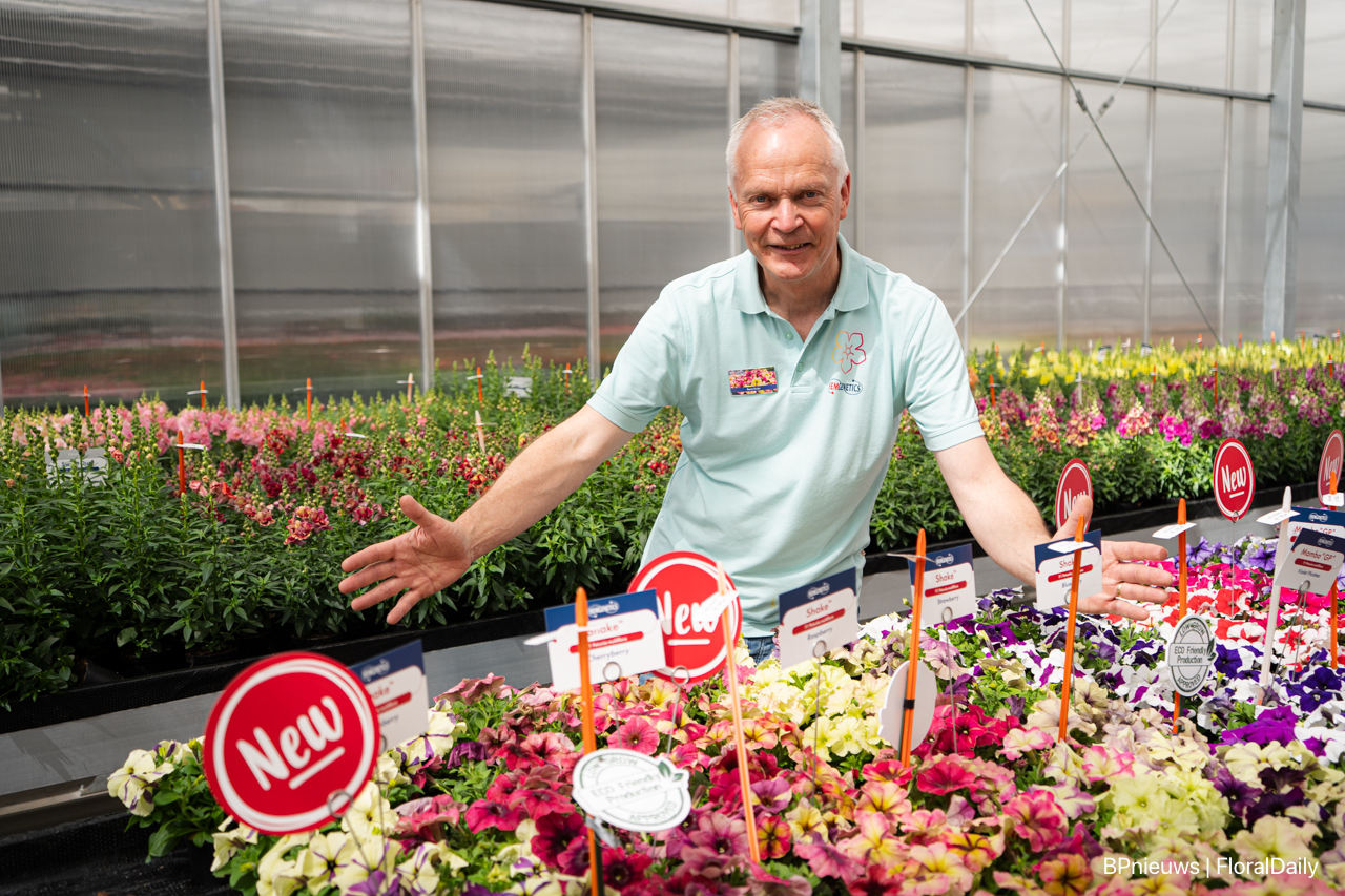 René Knijn van Hem Genetics bij de Shake. De Petunia geeft een zee aan verschillend gekleurde bloemen en er komen steeds nieuwe 'milkshake' kleuren bij in de serie.