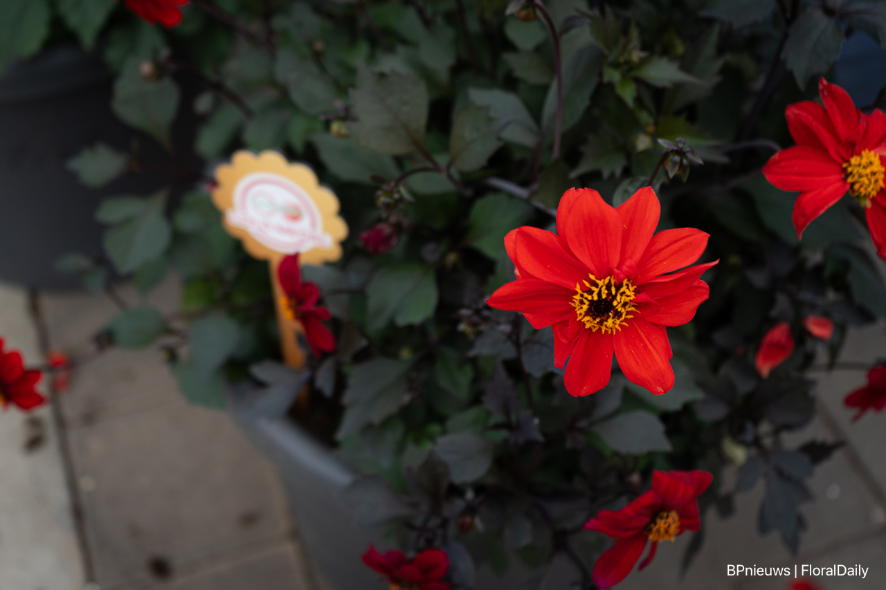 de Black Forest Ruby, een uit zaad vermeerderde donkerbladige dahlia. Dit is de eerste kleur uit de serie, nieuwe kleuren komen er aan. Uiteraard ook met de namen van edelstenen.