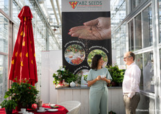 Ann Jennen (Fleuroselect) in gesprek met Marc van Wanroij in 'de keuken' van ABZ Seeds