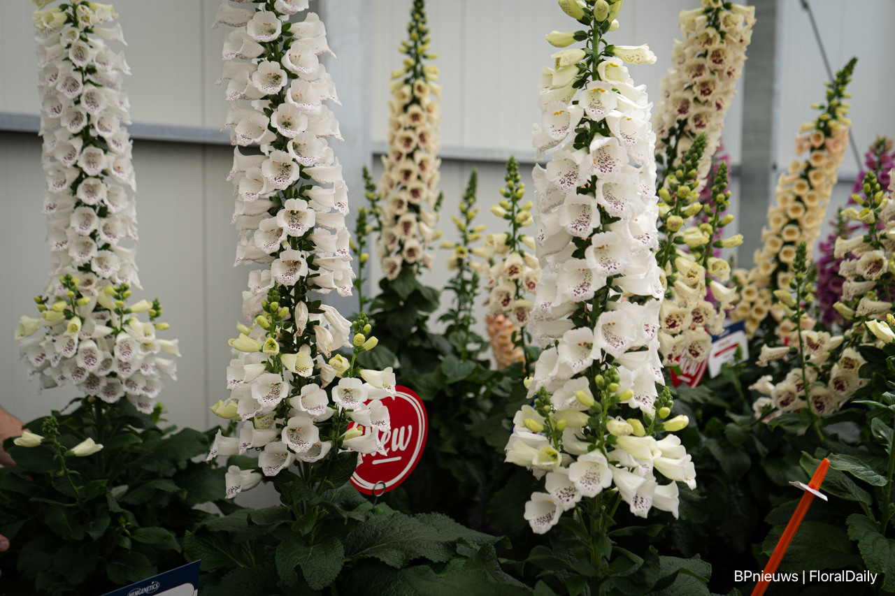 Digitalis DiBella is verkrijgbaar (vanaf volgend jaar) in vier verschillende kleuren die tegelijktijdig bloeien en gelijke lengtes hebben