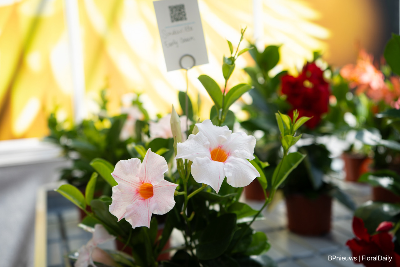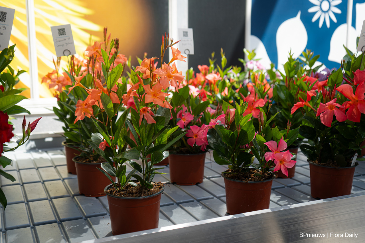 Sundaville Up, een plant die omhoog bloeit in allerlei tropische kleuren