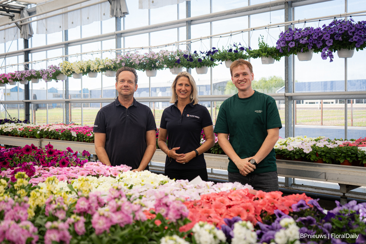 Harm, Josefien en Gijs van Takii Seed in hun fleurige kas