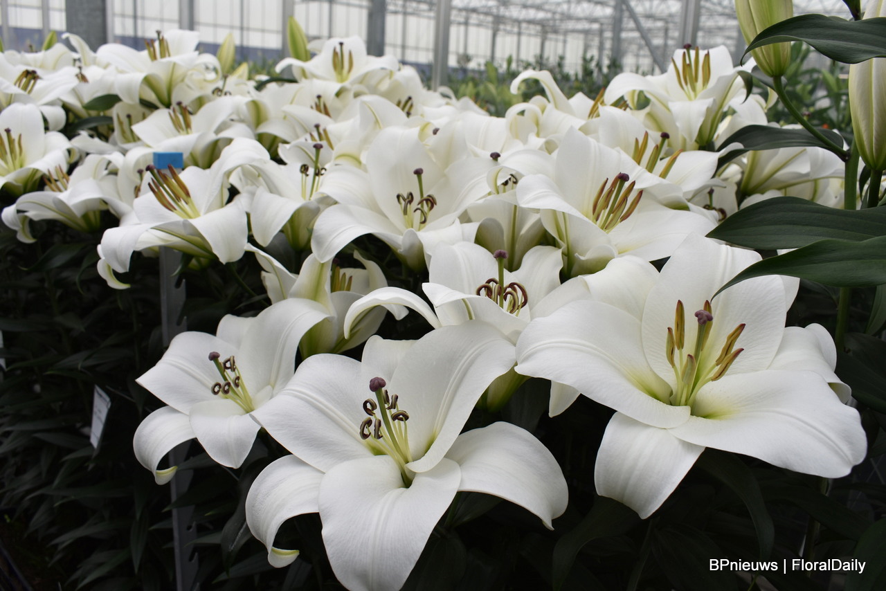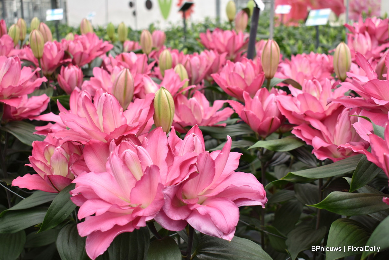 Een kijkje in de kas. Ook bij Boots zien ze een toenemende vraag naar dubbelbloemige lelies.