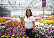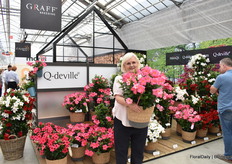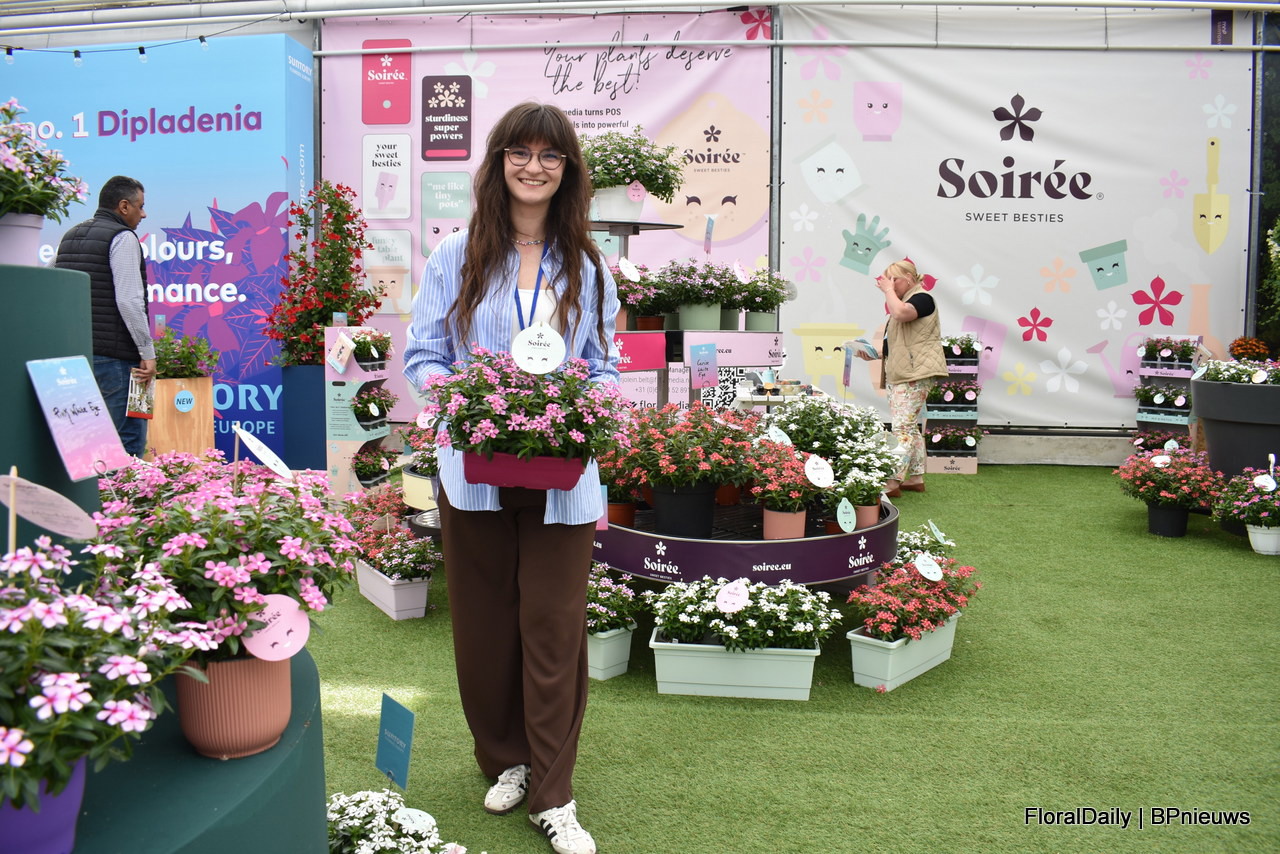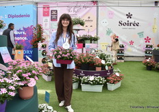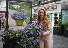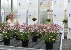 Francesca Lanzillotta met Soiree, een collectie van Suntory Flowers die momenteel uit 5 variëteiten bestaat. Uit stek, compact en extreem resistent.