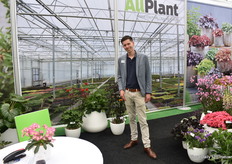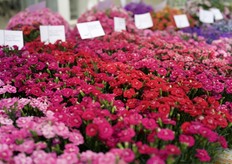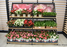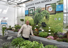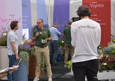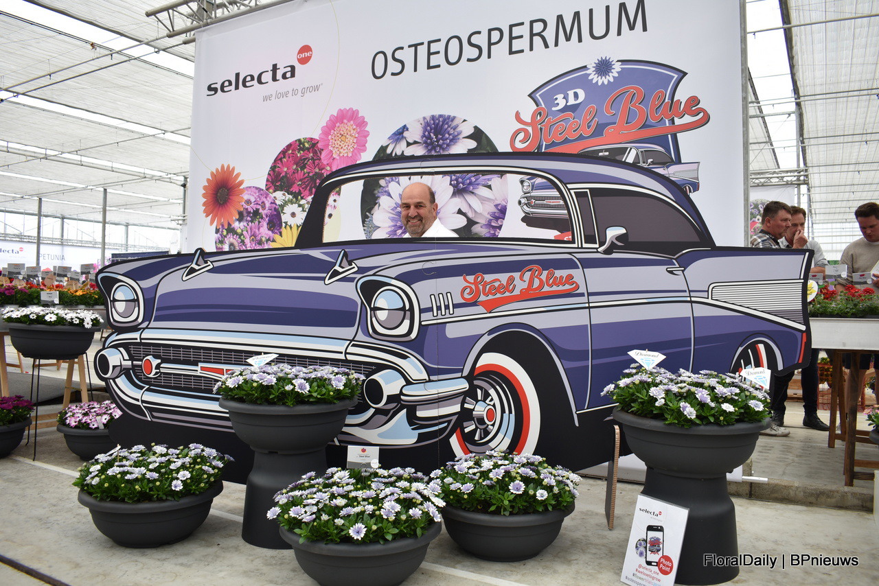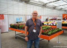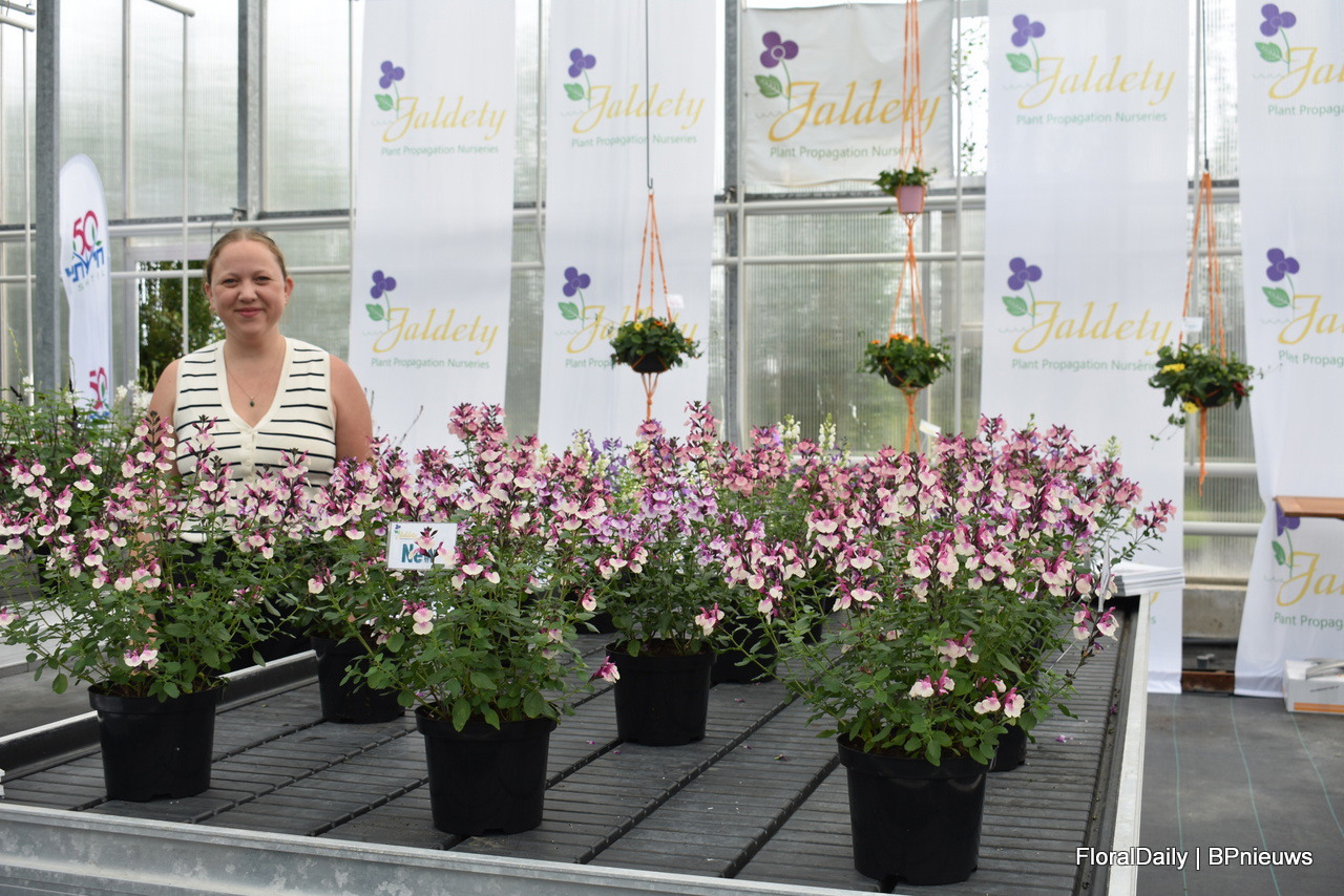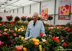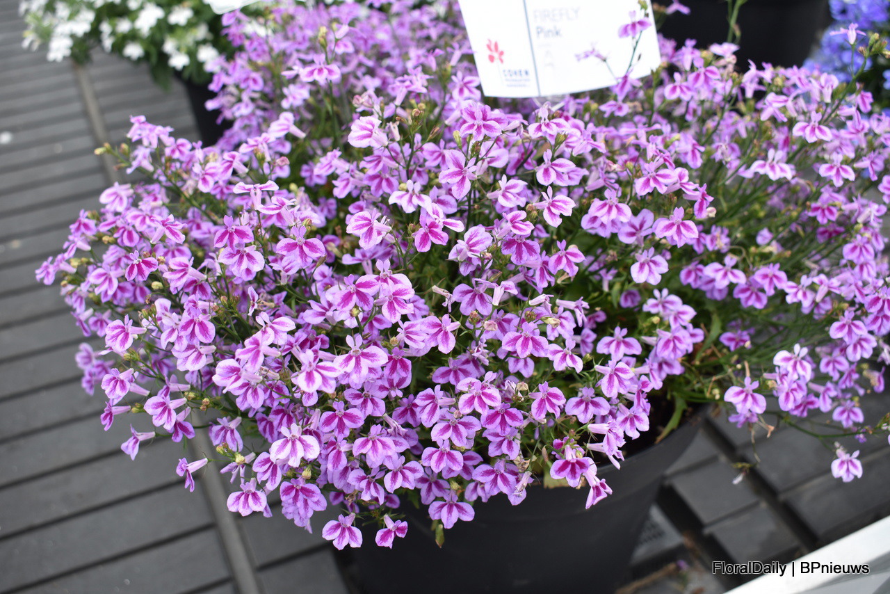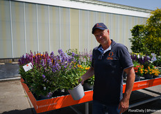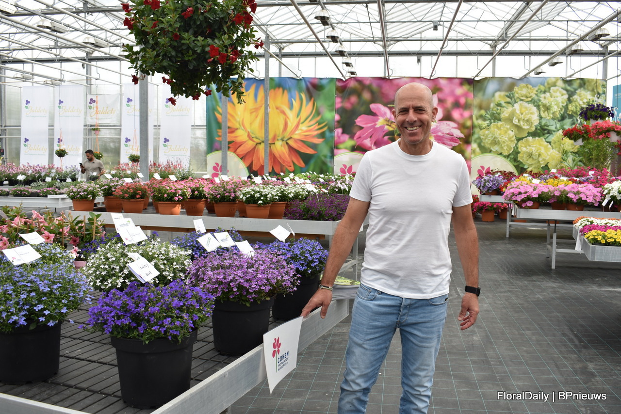 Asaf Cohen met de nieuwe introductie van Westhoff, Firefly. Het heeft roze kleine tweekleurige bloemen die rijk en vroeg bloeien. Deze varieteit is goed voor kleine pot productie.