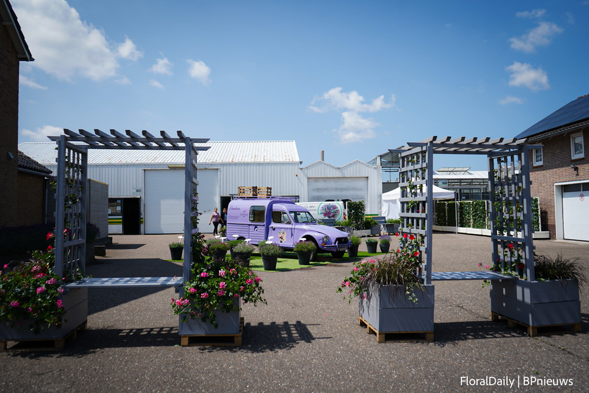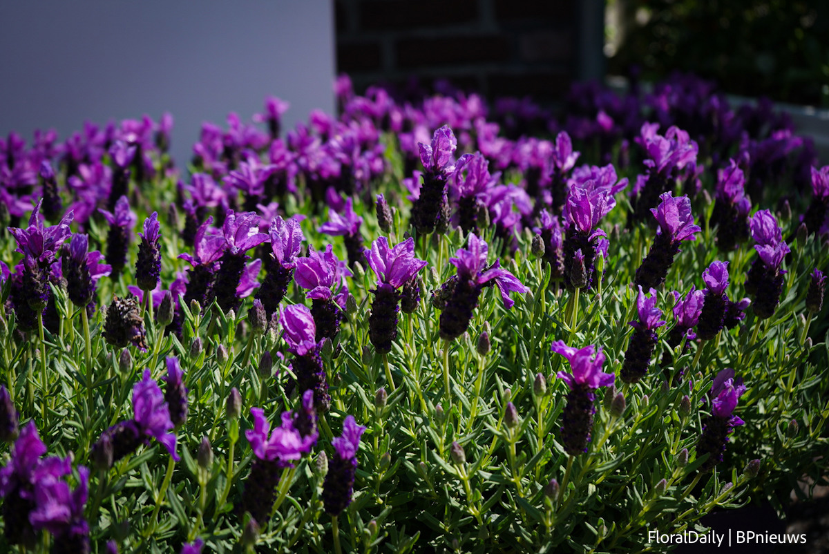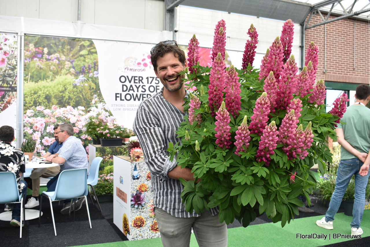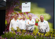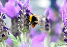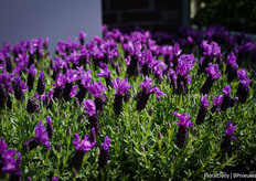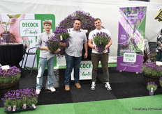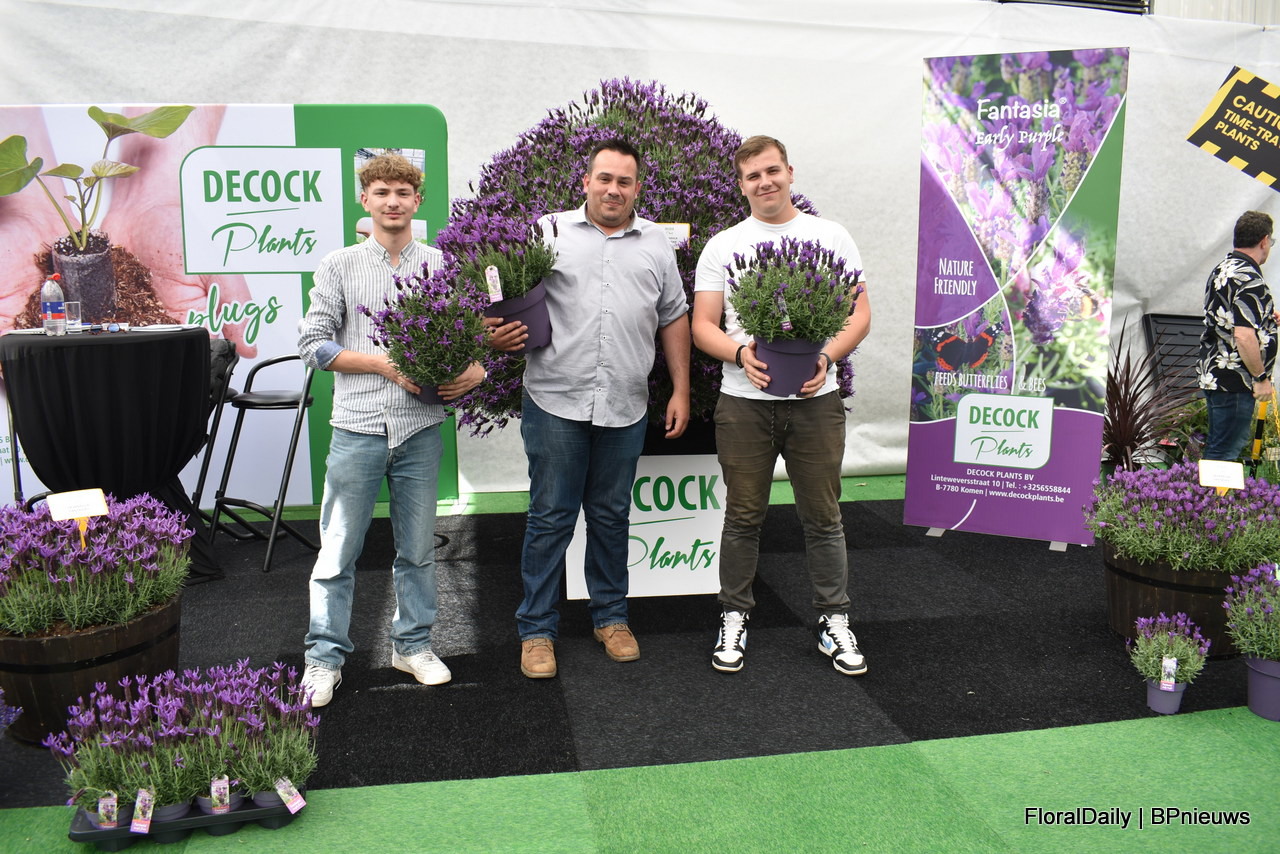 Het team van Decock met Lavendula Fantasia Purple Flame. Een stoechas type. Speciaal is dat deze lang bloeit, grote bloemen heeft en 3 generaties bloemen op de plant heeft, dus veel bloemen. Daarnaast is deze botrytis resisten, volgens Decock hebben vele andere al beginnende botrytis en deze niet. En last but not least, het trekt enorm veel bij en hommels