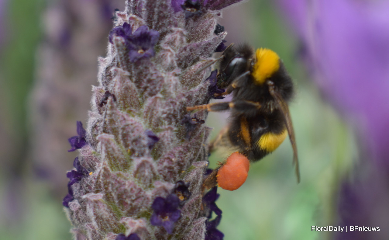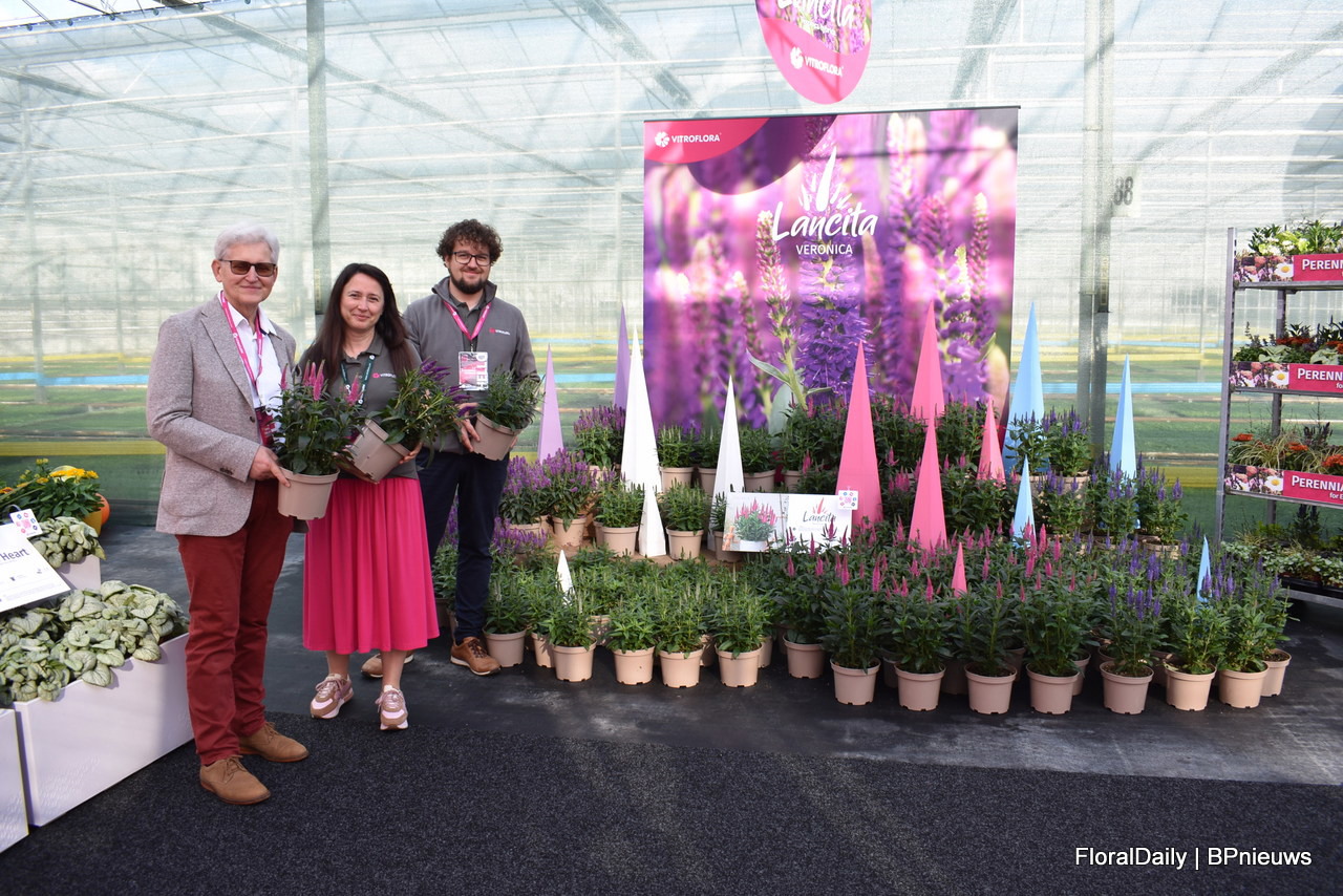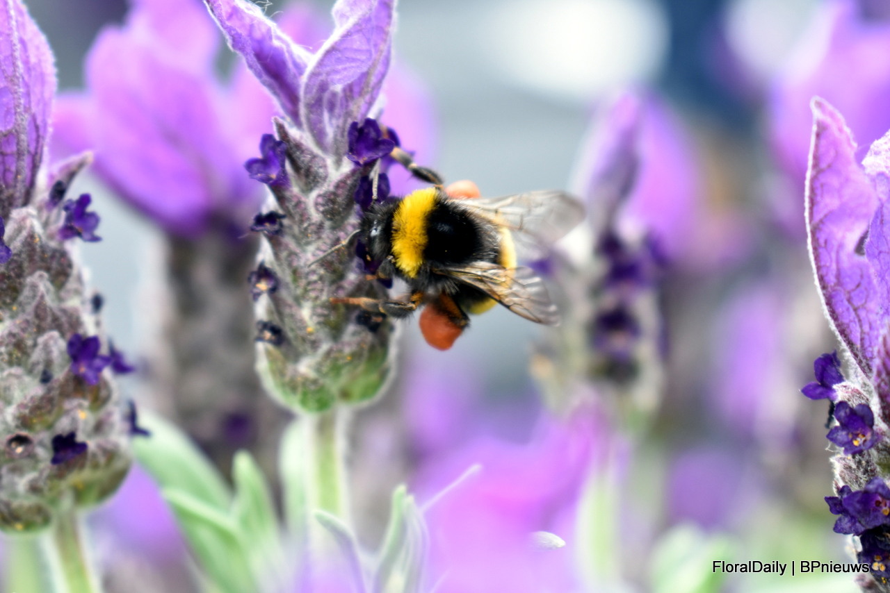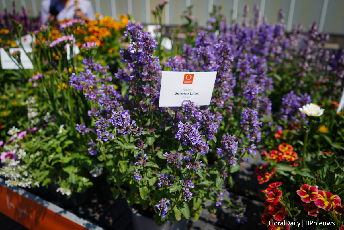 Het team van Decock met Lavendula Fantasia Purple Flame. Een stoechas type. Speciaal is dat deze lang bloeit, grote bloemen heeft en 3 generaties bloemen op de plant heeft, dus veel bloemen. Daarnaast is deze botrytis resisten, volgens Decock hebben vele andere al beginnende botrytis en deze niet. En last but not least, het trekt enorm veel bij en hommels