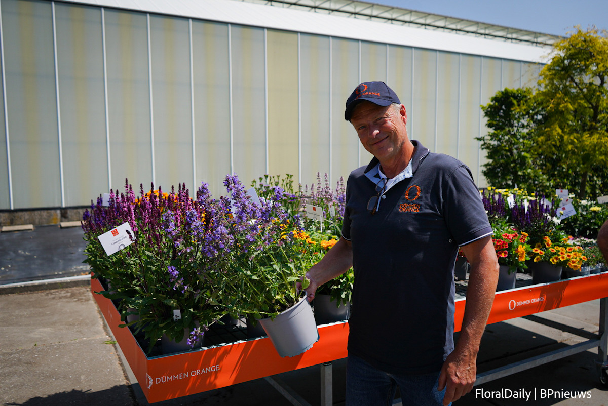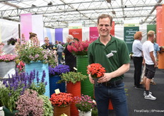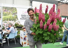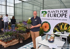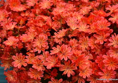 Alexander Kientzler met de nieuwe Lewisia Sunset Glow. Een stand alone van tissue culture. Is uniform, bloeit lang en begint al in maart. OOk nog droogte resistent en kan vorst goed aan.