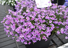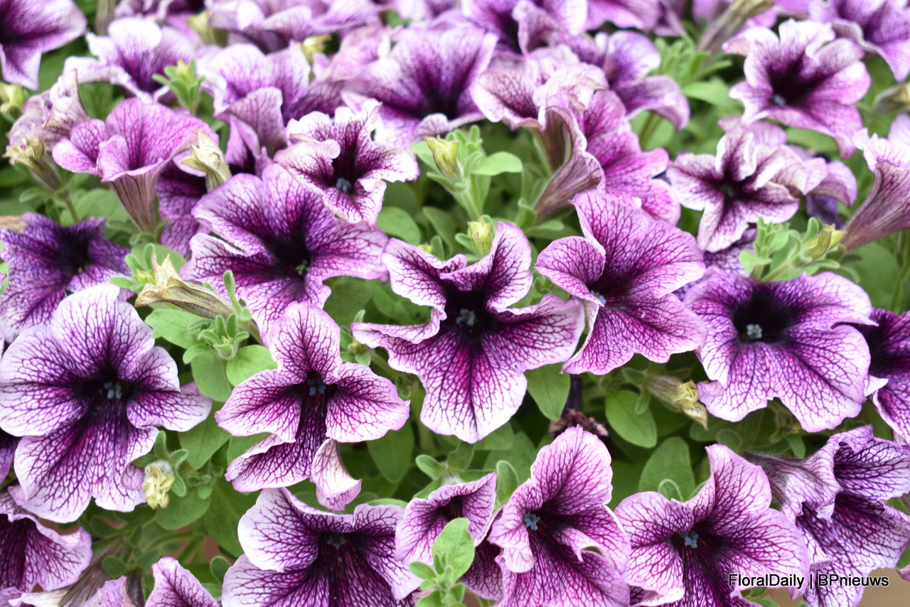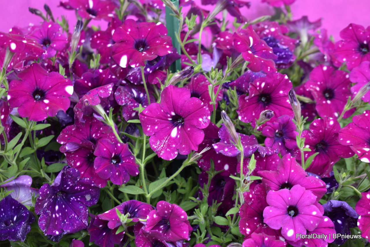 Top-tunia van Padana. De serie wordt steeds verbeterd. Een highlight is spotty purple, zie de foto. Deze petunia is paars met witte stippen en de kleur blijft stabiel, zelfs als je PGR’s gebruikt als je deze compact wilt houden.