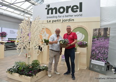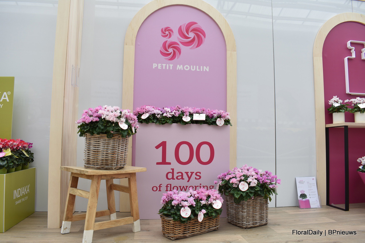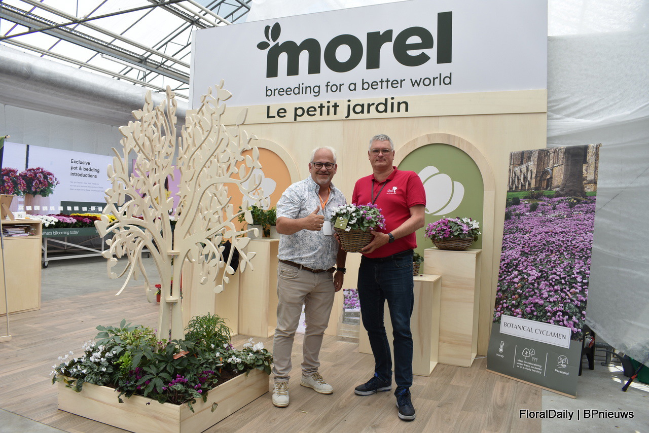 Eric Forschelen en Stephane Lemoine van Morel met de Botanical cylamen. 2 soorten hebben ze die winterhard zijn (-15 graden) Hederifolium bloeit van september tot en met november en Coum van december tot en met maart, dus gecombineerd heb je een bloeiende tuin voor 6 maanden.