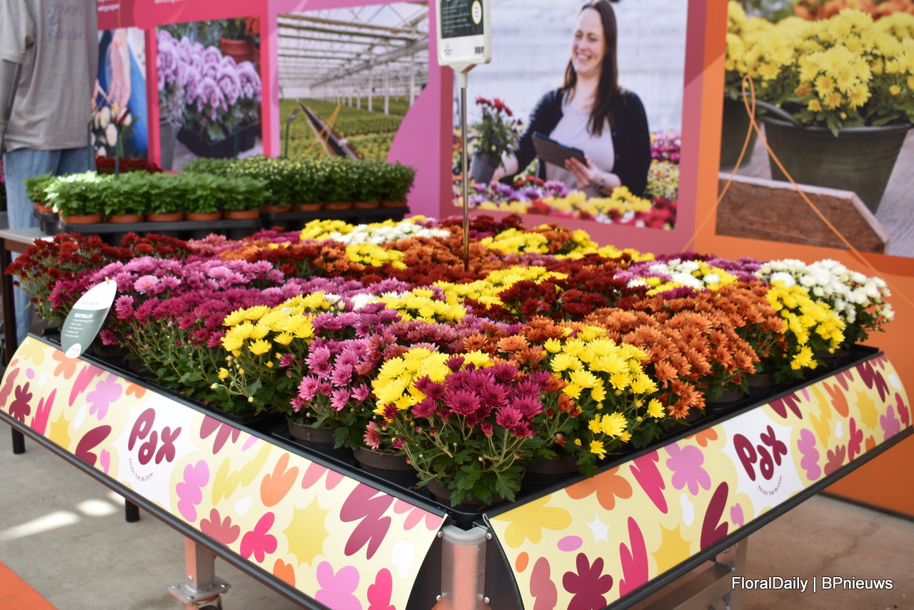 Pax bij Royal van Zanten, waar ze het veredelingsproces lieten zien. Het is een multiflroa. Voordelen zijn dat het compact is en dat je het niet hoeft te toppen. Ze zijn goed te combineren omdat het een familie is.