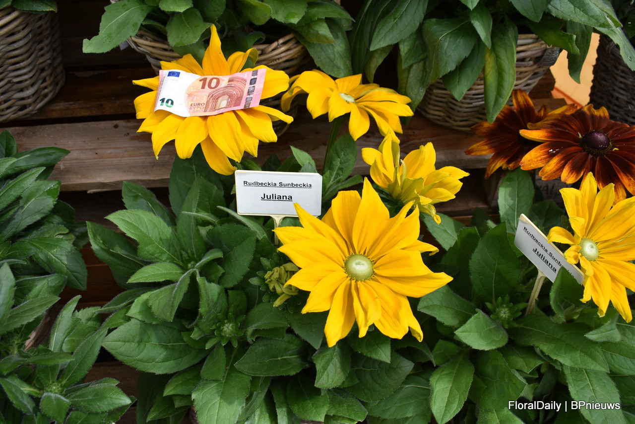 Juliana van Bull Genetics, die door Kientzler opgekweekt wordt heeft de grootste bloem. ZIchtbaar gemaakt met het briefje van 10 euro