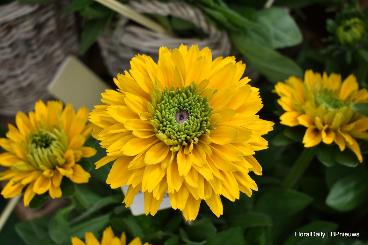 Het team van HM Clause. Anne Fourdringnier van HM Clause met de Coreopsis Presto, een gouden medaille winnaar van Fleuroselect. “So tiny, so cute”