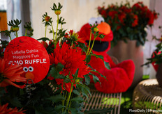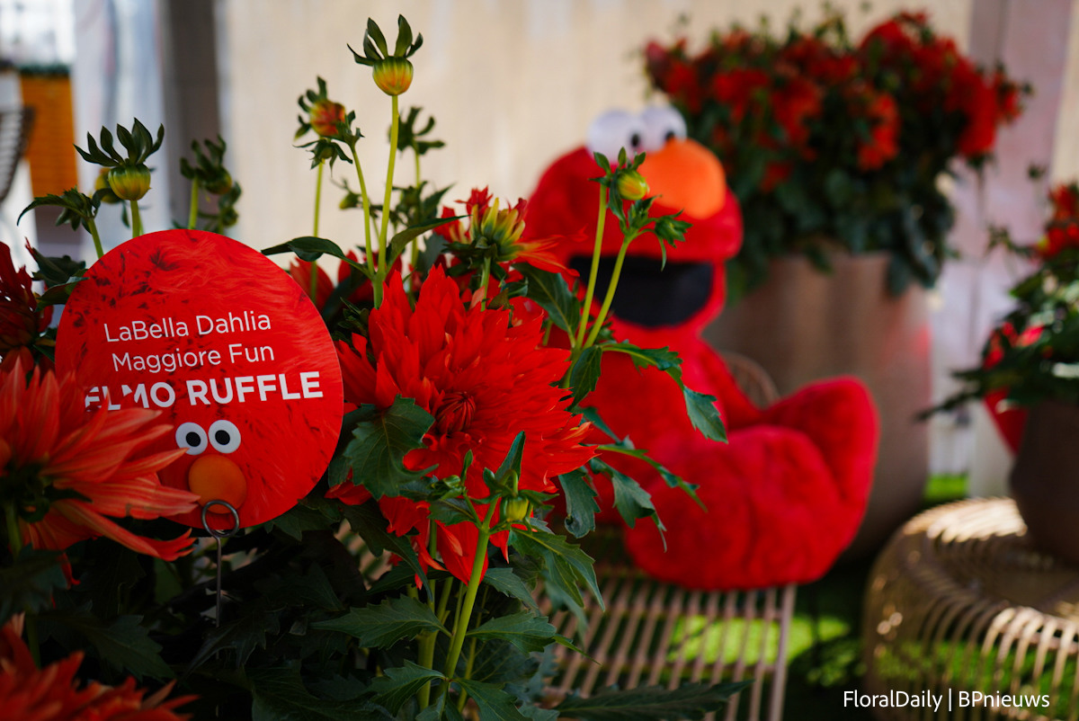 LaBella Dahlia Maggiore Fun Elmo Ruffle, met natuurlijk een echte Elmo erbij. Dit was een van de inzendingen voor de FleuroStar Award
