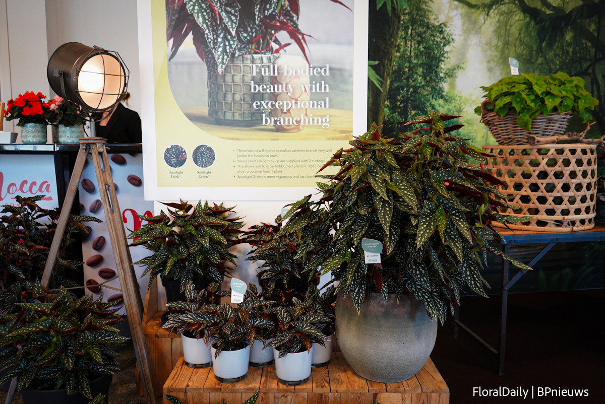 De interspecific begonia serie van Benary; Mega Cool. Beschikbaar in 4 kleuren. Ze hebben grote bloemen en bloeit vroeg, dus valt daardoor op in retail.