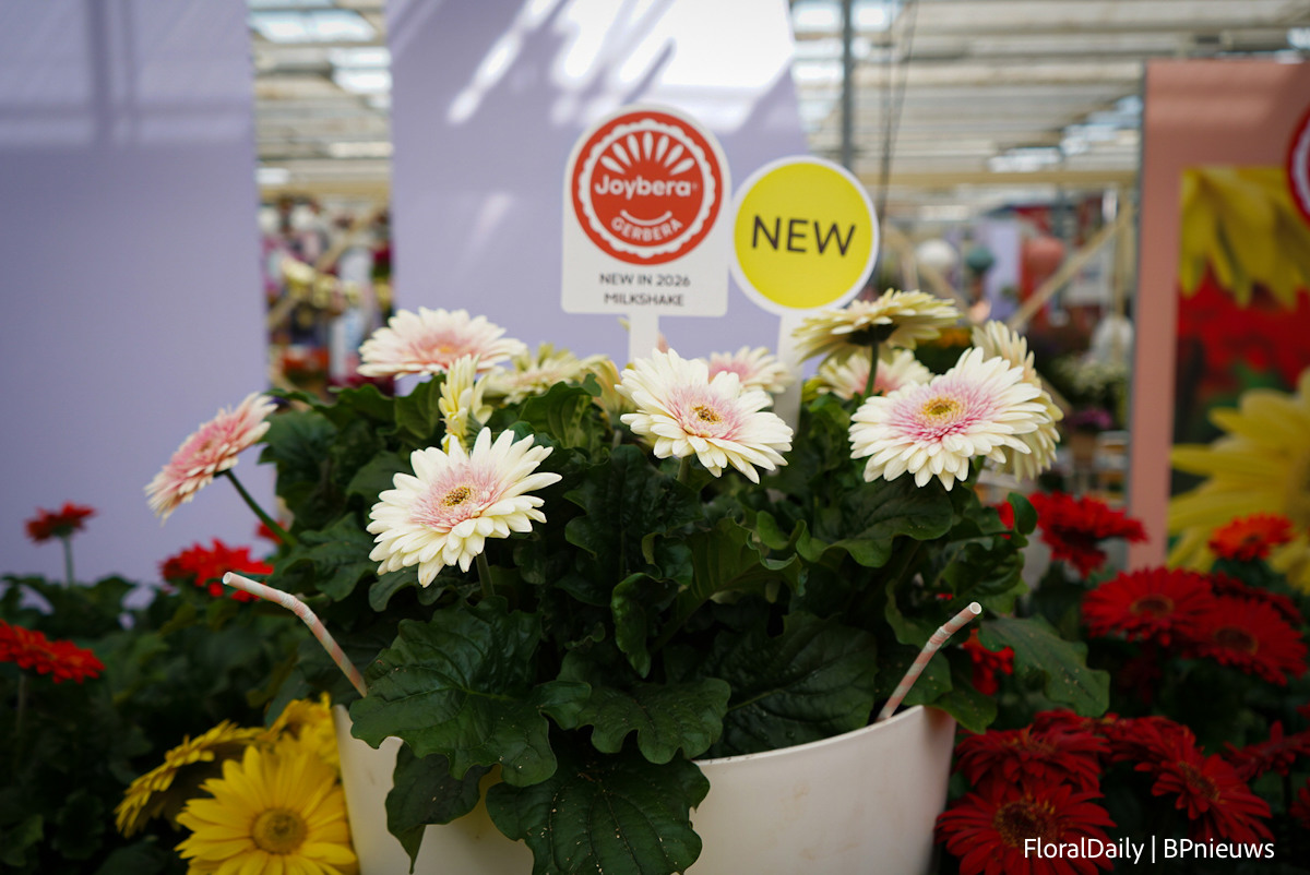 En nieuw binnen de Joybera serie, dubbelkleurige gerbera's. Hier de Milkshake
