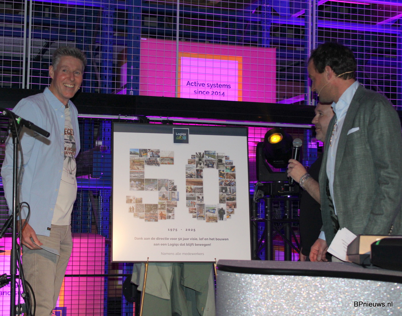 De directie van Logiqs kreeg van het personeel een mooi cadeau. Gert-Jan van Staalduinen en Reyer van der Louw namen het met plezier in ontvangst.