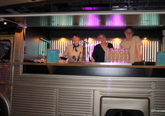 Ook op de bus bij de ingang staat het strakke nieuwe logo.