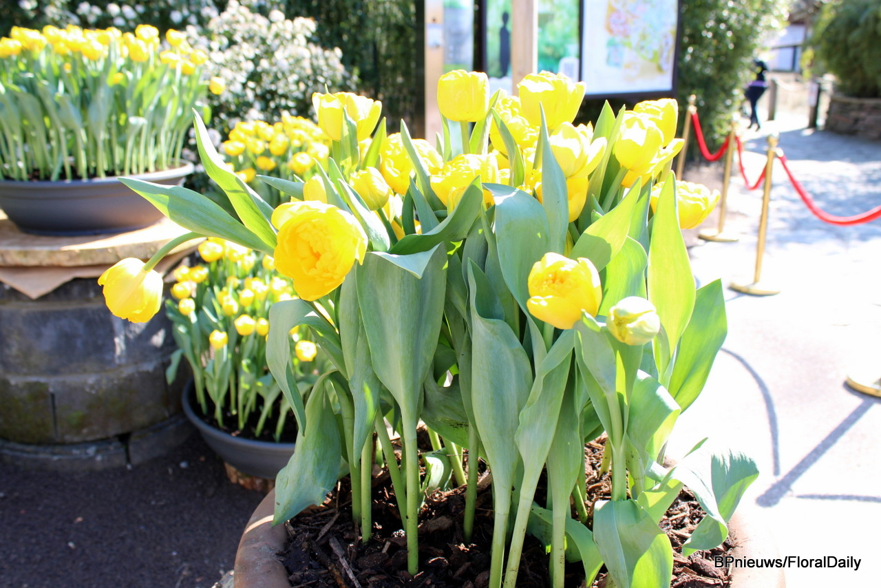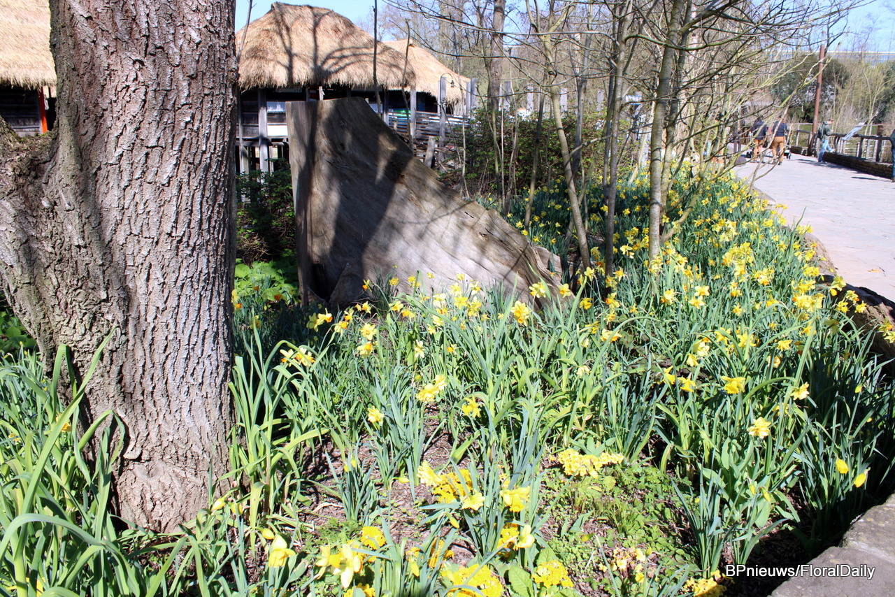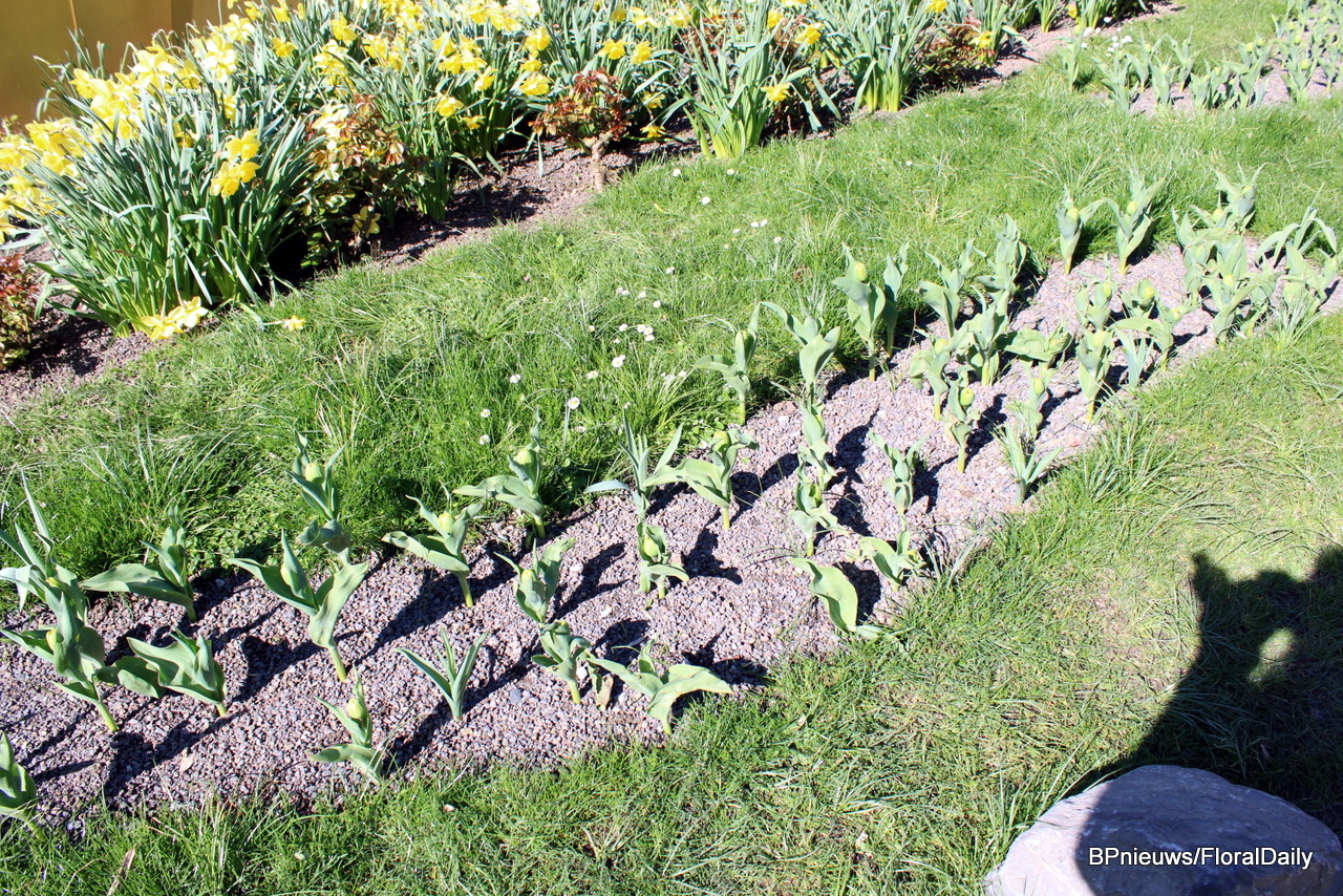 In het park is de tulp al geplant. Nog even wachten tot ze gaan bloeien