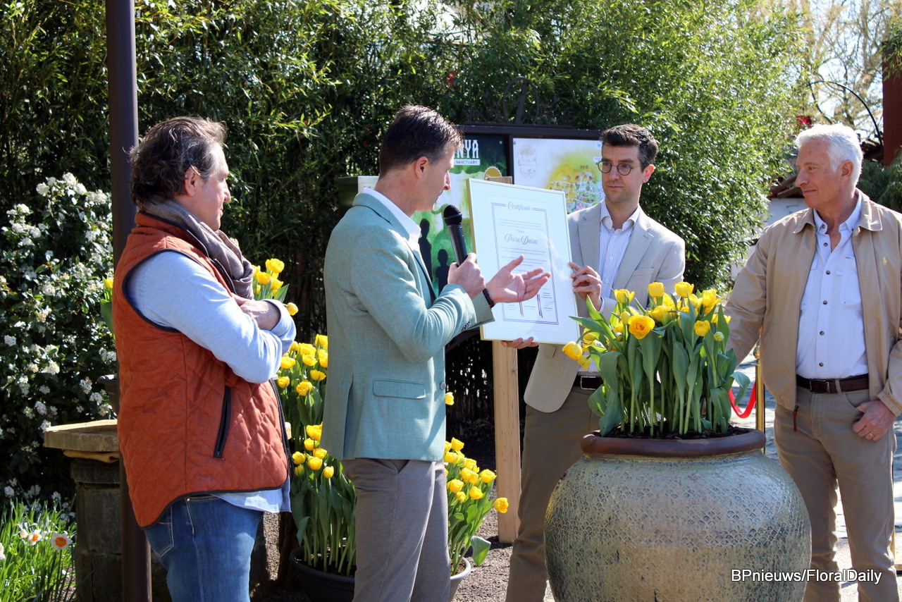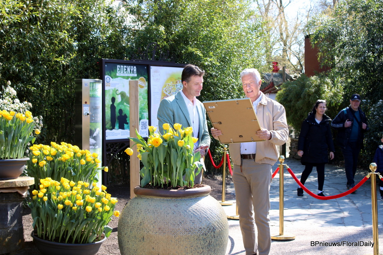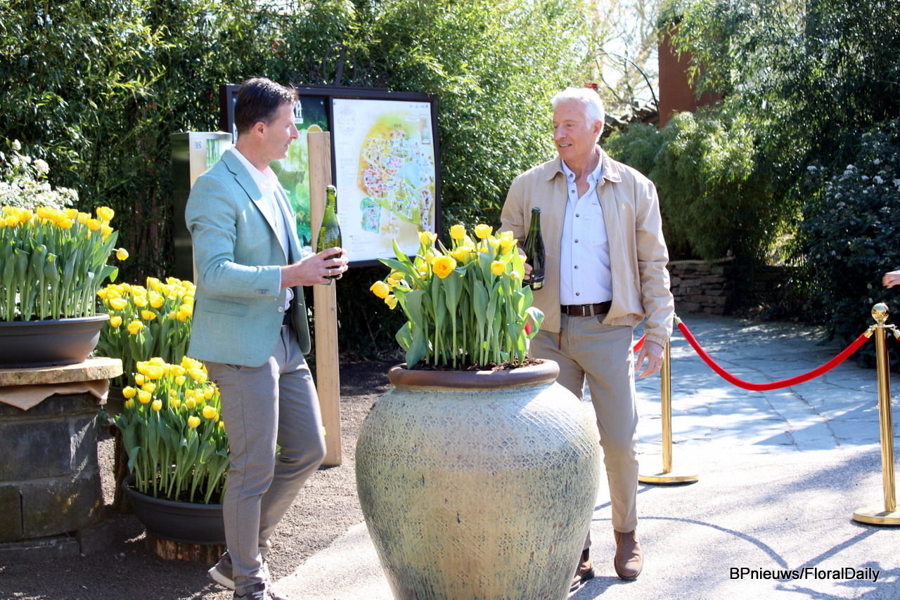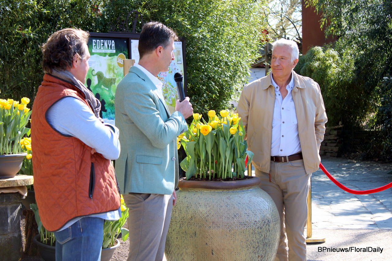 Hier draait het evenement van vandaag om: de doop van de nieuwe tulp Tulipa Pairi Daiza