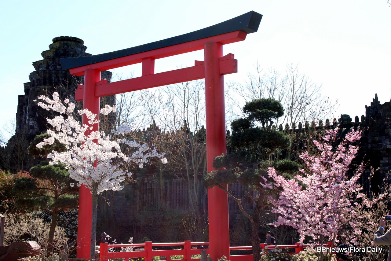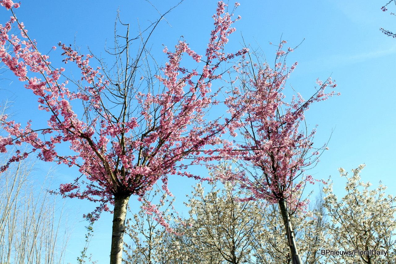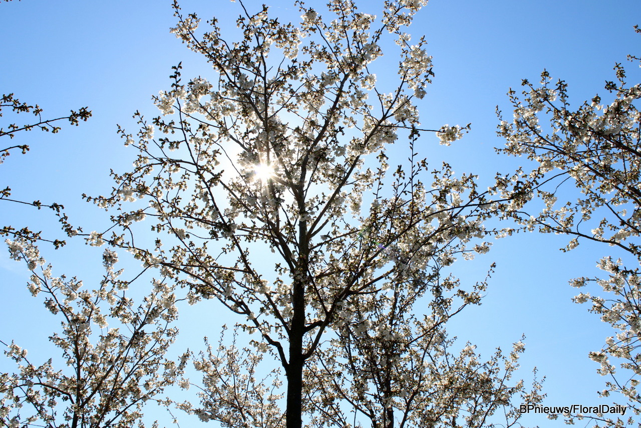 Er staan 10 verschillende variëteiten kersenbloesem, om zo lang mogelijk bloei te hebben