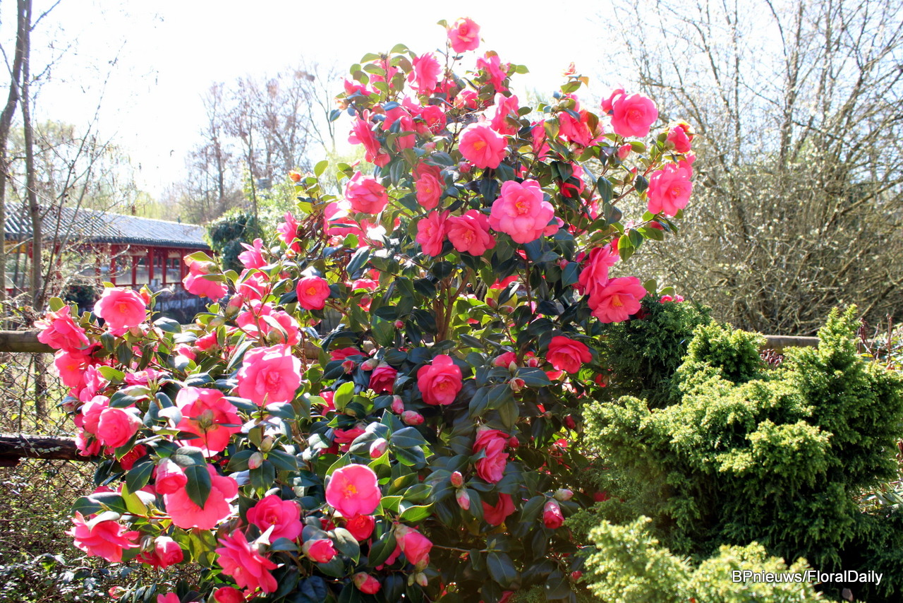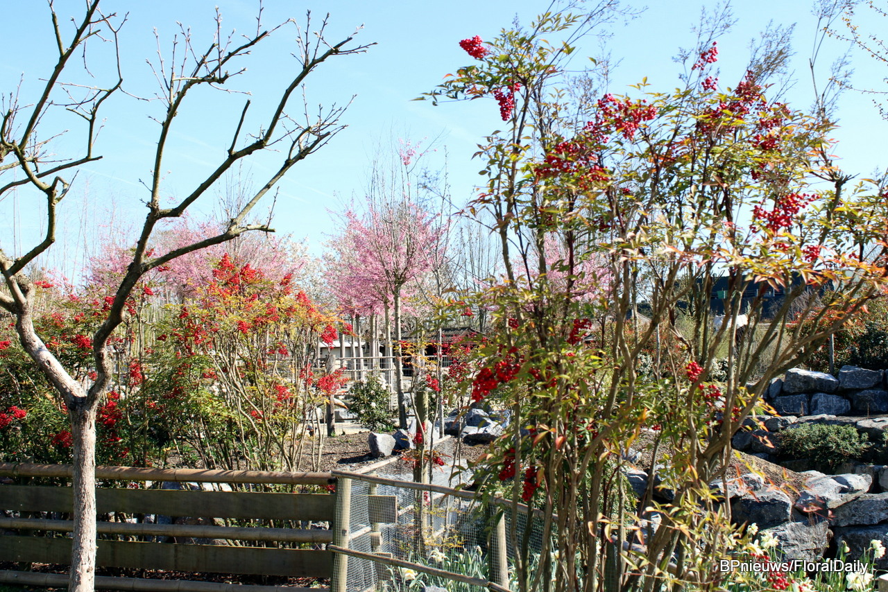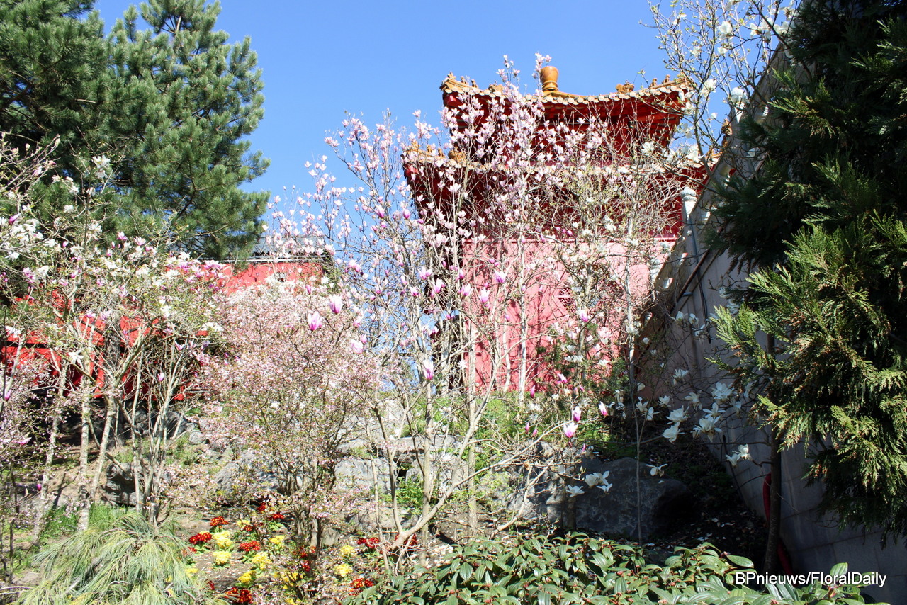 Er staan 10 verschillende variëteiten kersenbloesem, om zo lang mogelijk bloei te hebben