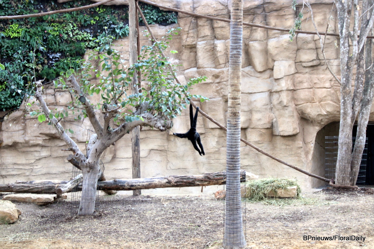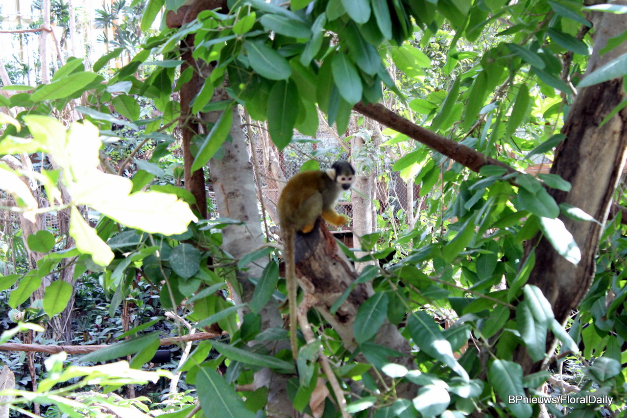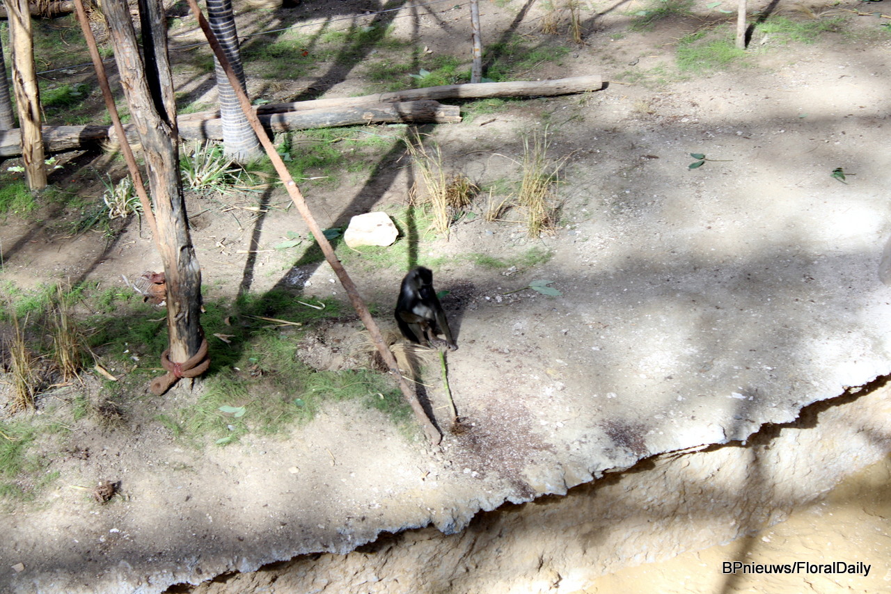 Het is lastig om de dieren weg te houden van de planten. Ook deze aap was lekker met suikerriet aan het spelen