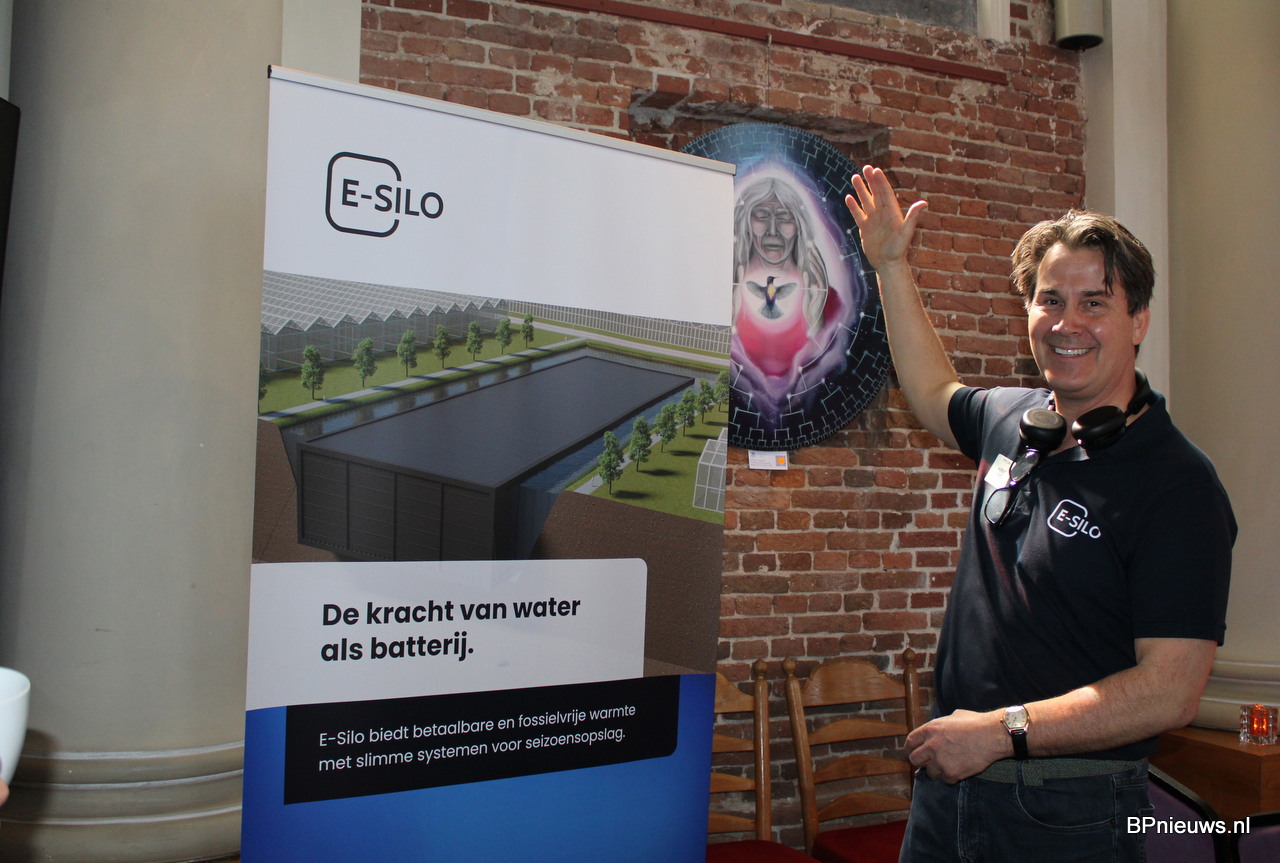 Norbert Vroege CEO van E-Silo. Presenteerde enthousiast een energie oplossing, waardoor telers van het gas af kunnen.