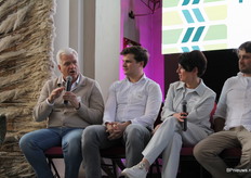 We gingen van start met een interactieve paneldiscussie. Op het podium hadden plaats genomen Jelte van Kamen (Harvesthouse) Martijn van Vliet (Florpartners) Edith Bentvelzen ( Ter Laak Orchios) Dave Marcus (KAVB) en Albert Haasnoot (Royal Flora Holland)