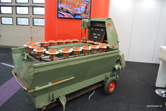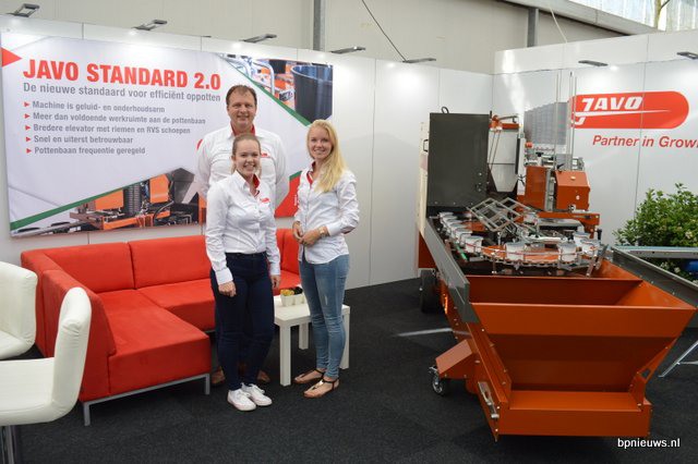 Javo introduceert een geheel vernieuwde oppotmachines, dusdanig nieuw dat het de Standard 2.0 gedoopt is. Het bedrijf was de eerste die zo'n vijftig jaar geleden met een dergelijke machine - die men ter contrast/illustratie had meegenomen (volgende foto) - de markt betrad. Op de foto Bert Miggelenbrink met lieftallige assistentes.