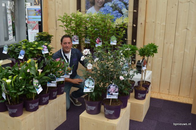 Maikel Loots van Forever&Ever. Het assortiment wordt steeds breder: zo is er onlangs een paarse hortensia aan het assortiment toegevoegd er, zijn er 4 nieuwe kleuren in het 'op stam' segment.