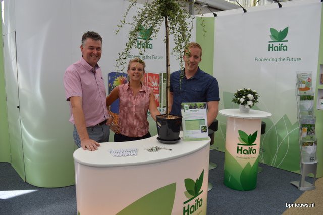 Hans van der Plas, Dorien Geentjens en Lowie Weerts van Haifa. Topdress is een mengsel van gecoate en ongecoate meststoffen, die letterlijk op de aarde blijven plakken wanneer ze eenmaal vochtig zijn.