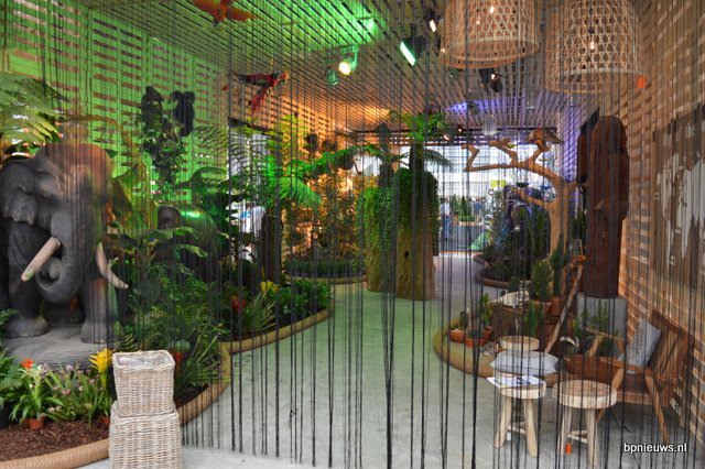 Een 'house of inspiration'; een jungle-achtige oase met tjilpende vogeltjes en, uiteraard, (tropische) planten.
