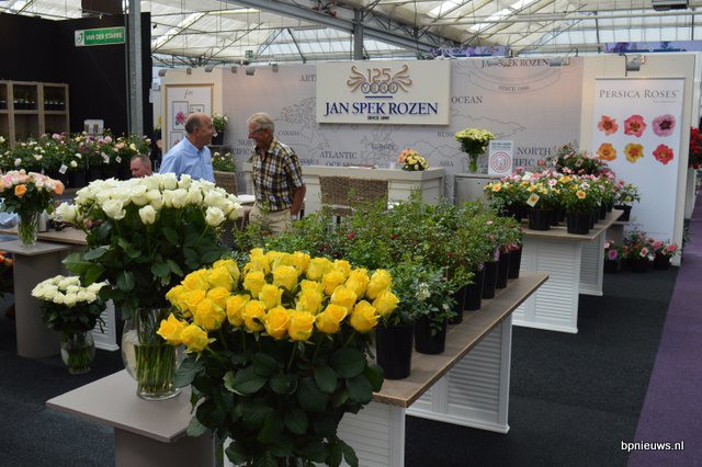 Jan Spek Rozen, met de snijrozen een wat vreemde eend in de bijt, maar met het assortiment potrozen toch ook in de buiten teelten geen onbekende.
