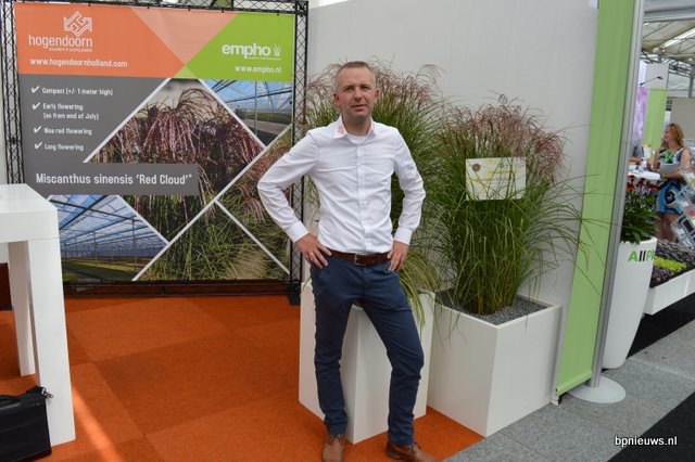 Marco Wesselink van Hoogendoorn. Voor een van de grassen uit het assortiment kreeg de jongeplanten vermeerderaar een bronzen medaille opgespeld