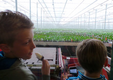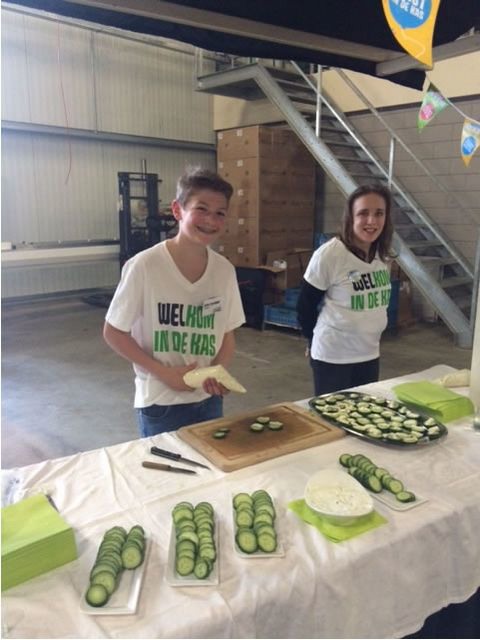 Drukte in de kas bij Made, daar smaakten de stroopwafels best!