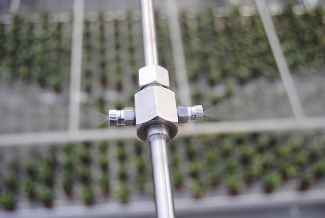 Het nevelsysteem van Fog-System uit Monster in werking in de kas
