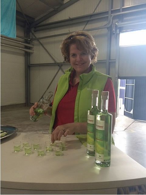 Lizette Steeghs van Kompany schenkt komkommerlikeur. Die viel erg goed in de smaak bij het publiek.