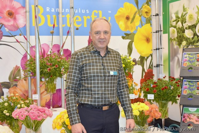 Daan from Greenworks Breeding&Youngplants. On the pfoto we see his Butterfly Ranunculus behind him.