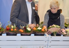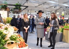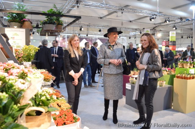 Frederike Israel and Louise Jepsen of Knud Jepsen showin Danish HRH Princess Benedikte their kalanchoe varieties.