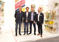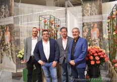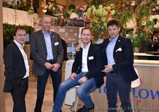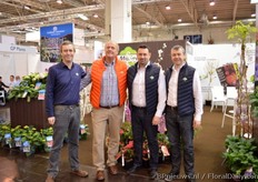 Pieter, Bert, Kees and Walter from KP Holland pose at their With Spathiphyllum, Orange Kalanchoë Rosalina and Pink Siam Curcuma.