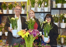 Peter van Oss, Felicia v/d Weiden and Tricia Tang v/d Borg Showing their new pot freesia.