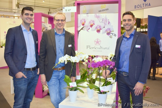 Marco, Joop and Niels from Floricultura standing next to some of their beautiful orchids.