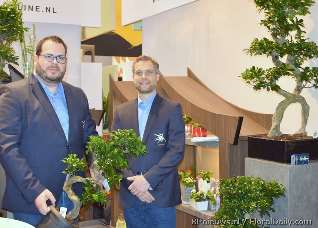 Mike v/d Helm and Leon Hunink of Oriental Group holding their Ficus Ginseng.