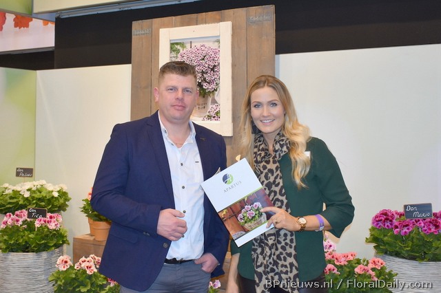 Don Bruinen and Nathalie v/d Vlist showing their new Don Maxima, Don Mario and Bella Dona Angel Geraniums.