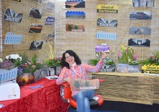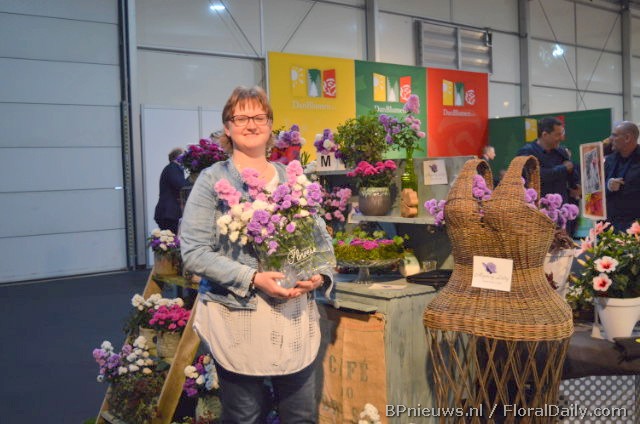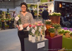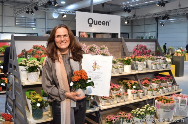 "Louise Jepsenm with the novelty award for their double flowered kalanchoe called Dean. This variety is part of the "Else Flowers" line."